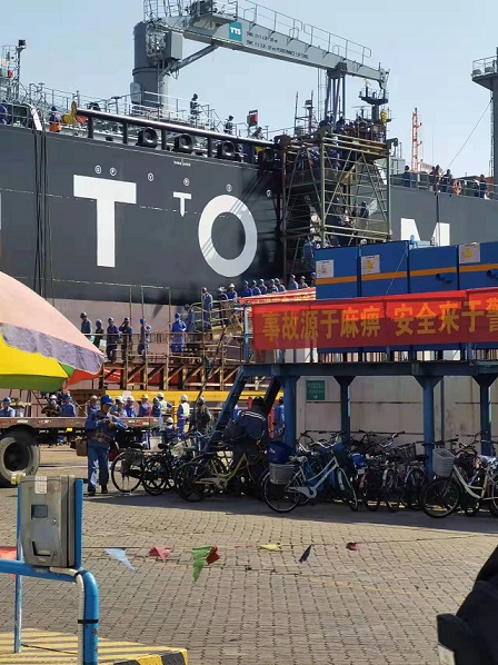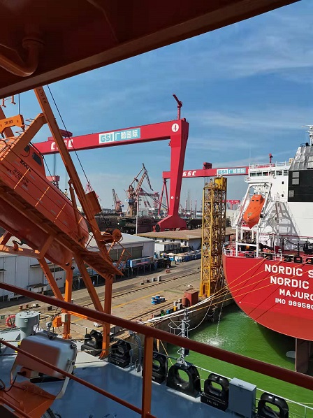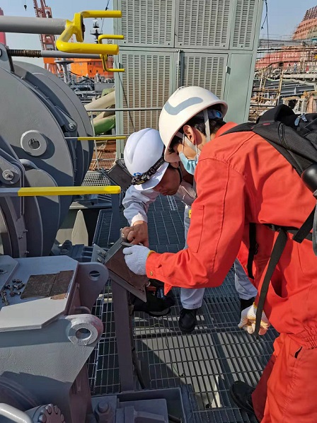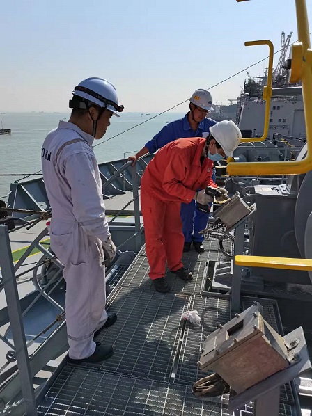 質(zhì)保部張建國部長,生產(chǎn)部王博副經(jīng)理在廣船國際公司進(jìn)行售后服務(wù)。