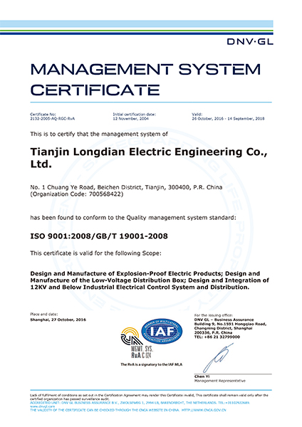 2017年9月27日,DNV(挪威船級社) GL天津分公司審核員前來我司,針對公司ISO 9001:2008/GB/T 19001-2008質量管理體系認證新版換證工作進行審核。公司董事長、高層領導和部門主管出席參與了審核首末次會議。在李毅副總主持下,各部門積極配合審核