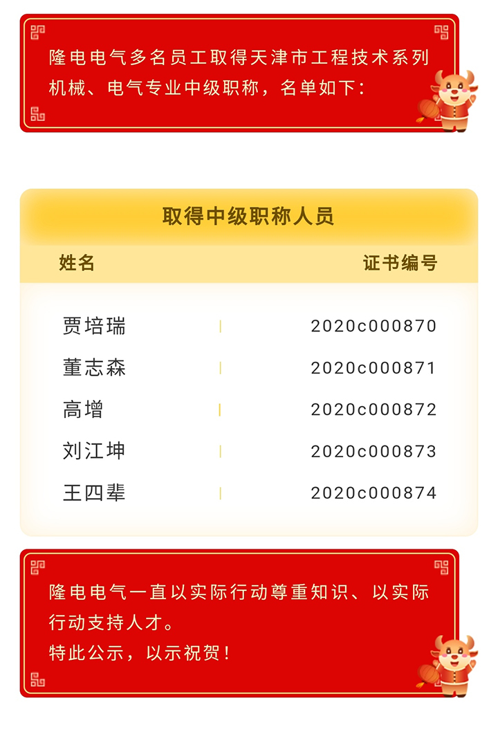 祝賀我司多名員工取得天津市工程技術系列中級職稱